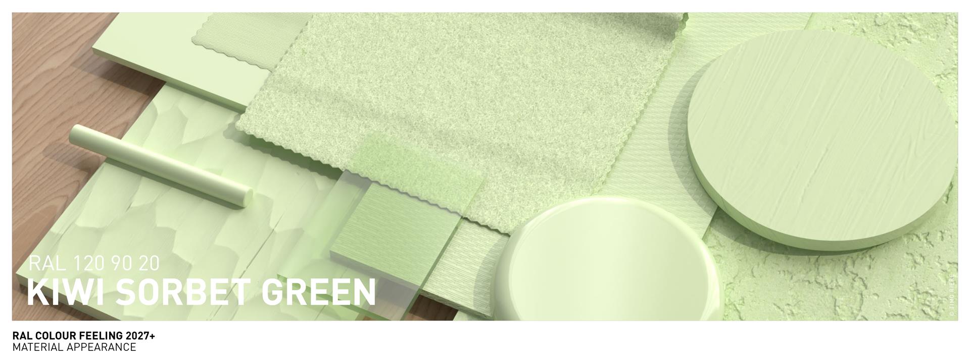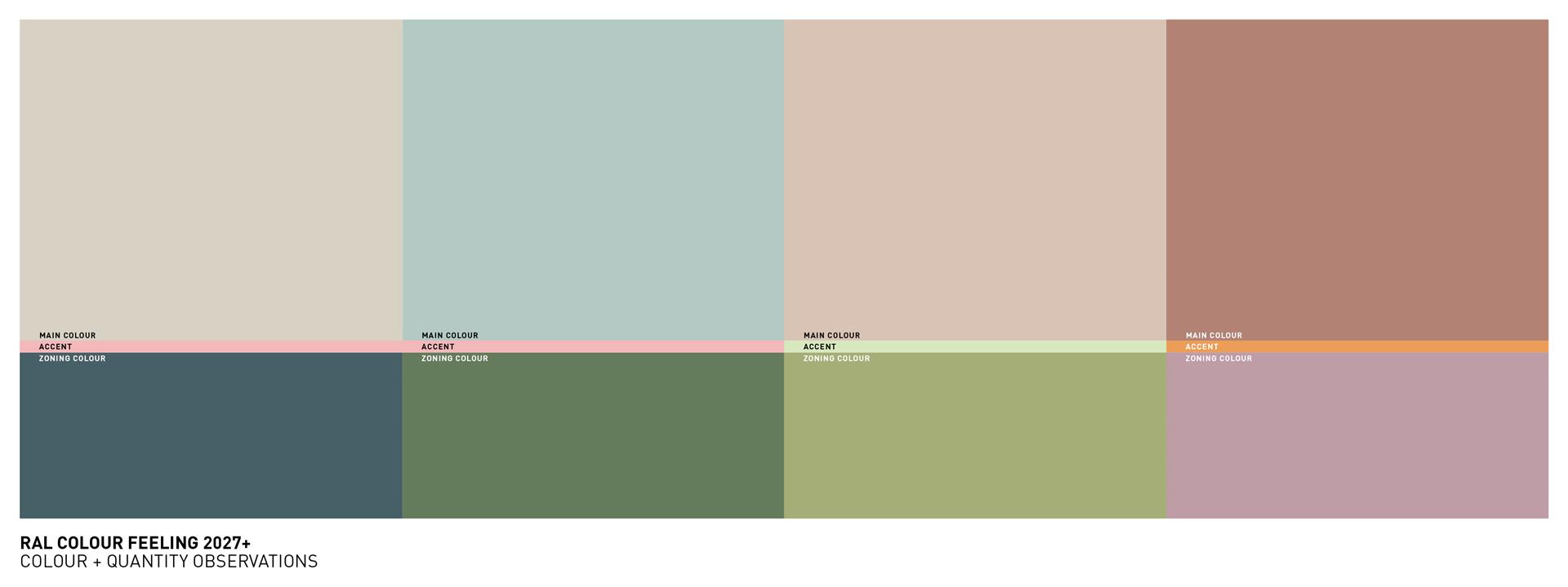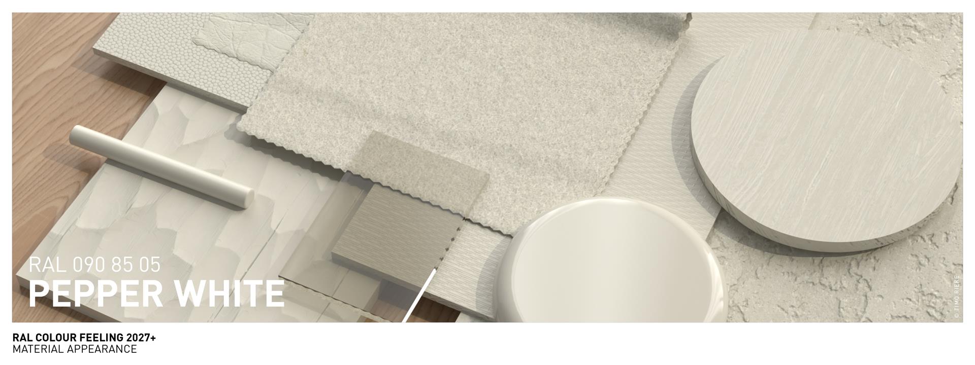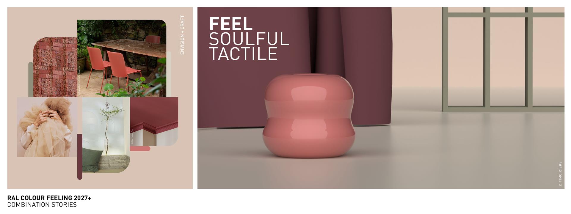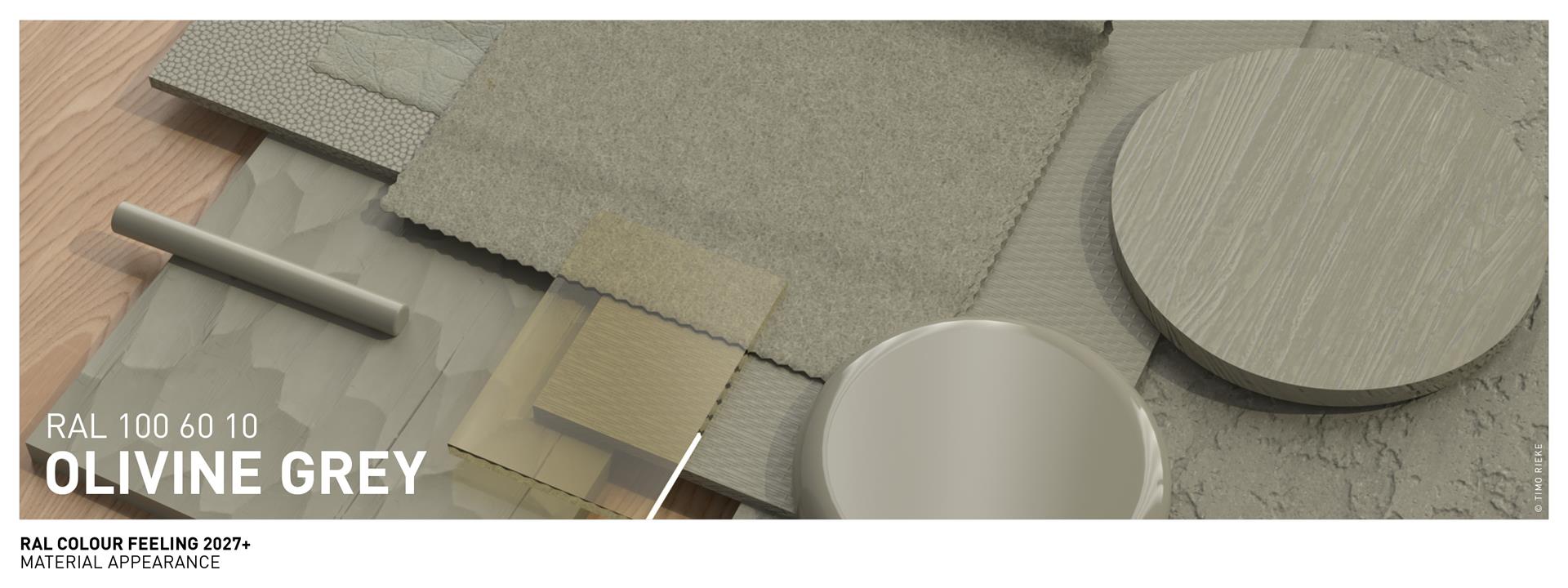 Die RAL Trendbox übersetzt die 15 Farben des Farbtrendreports RAL COLOUR FEELING 2027+ in verschiedene Materialien und Oberflächen.