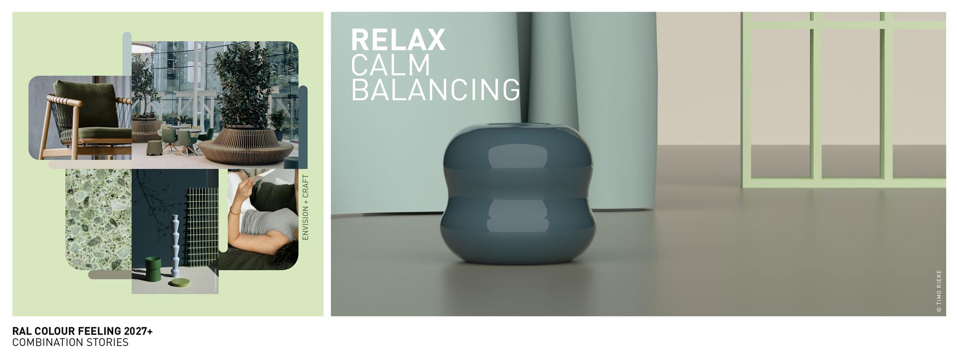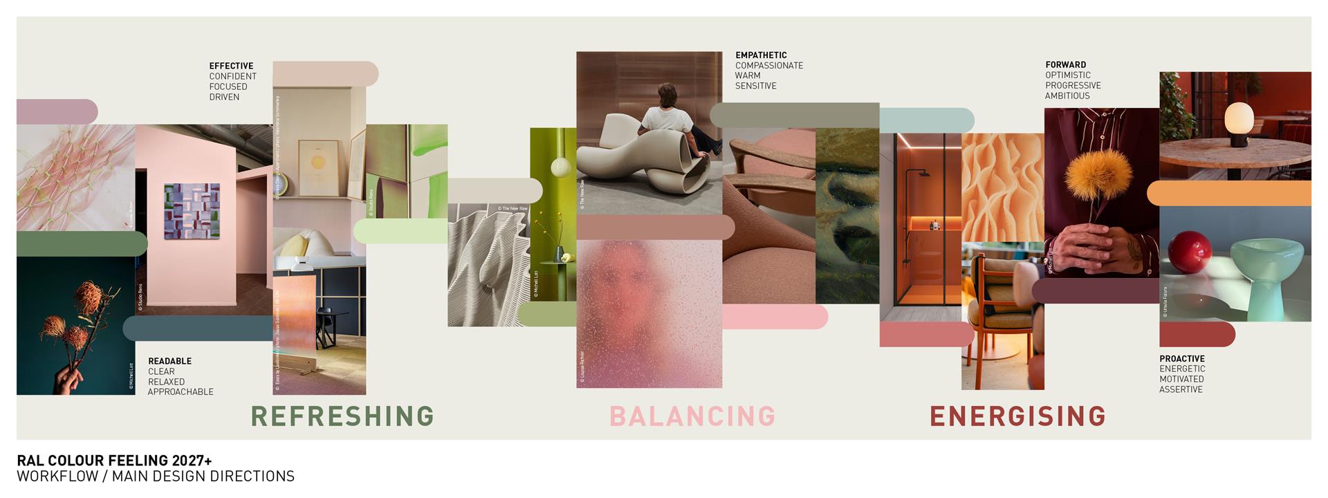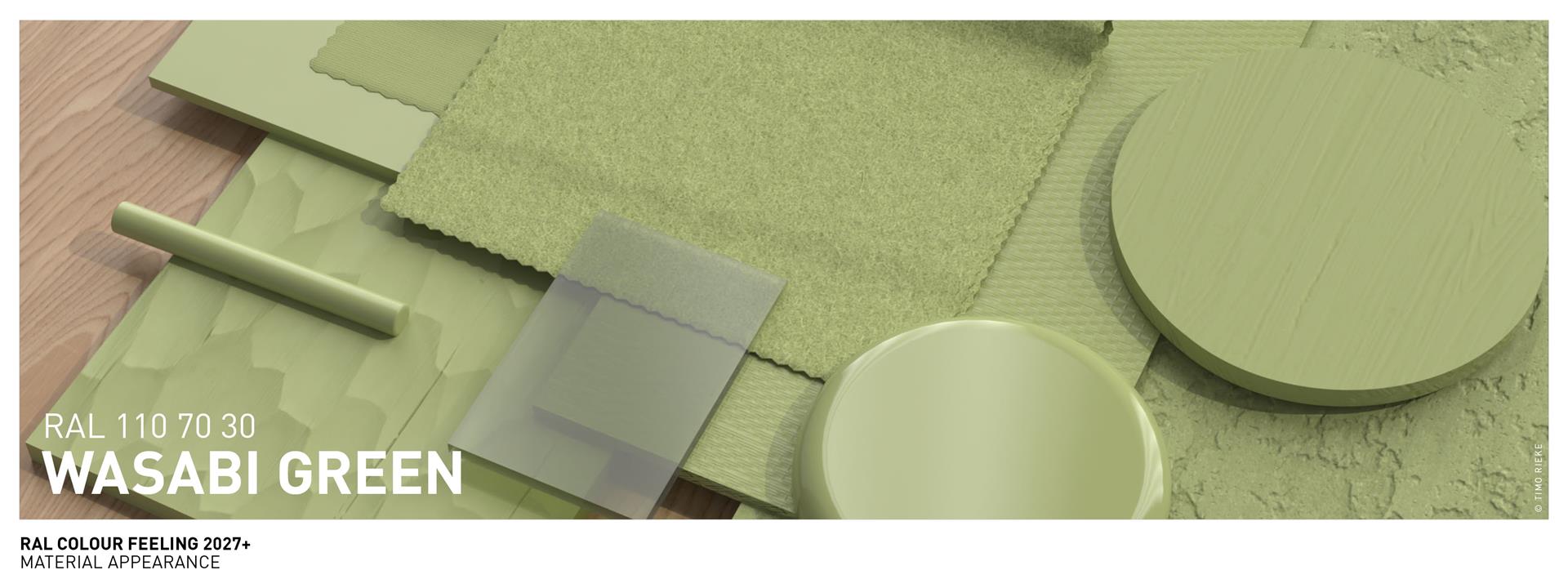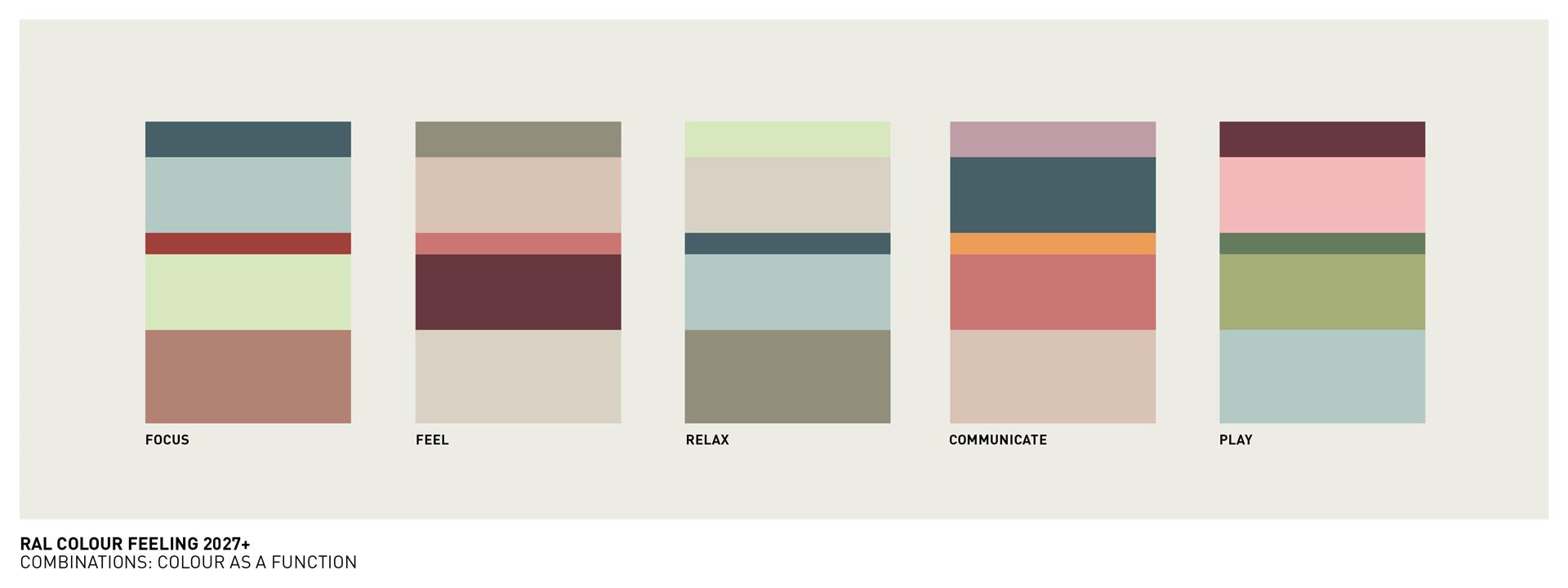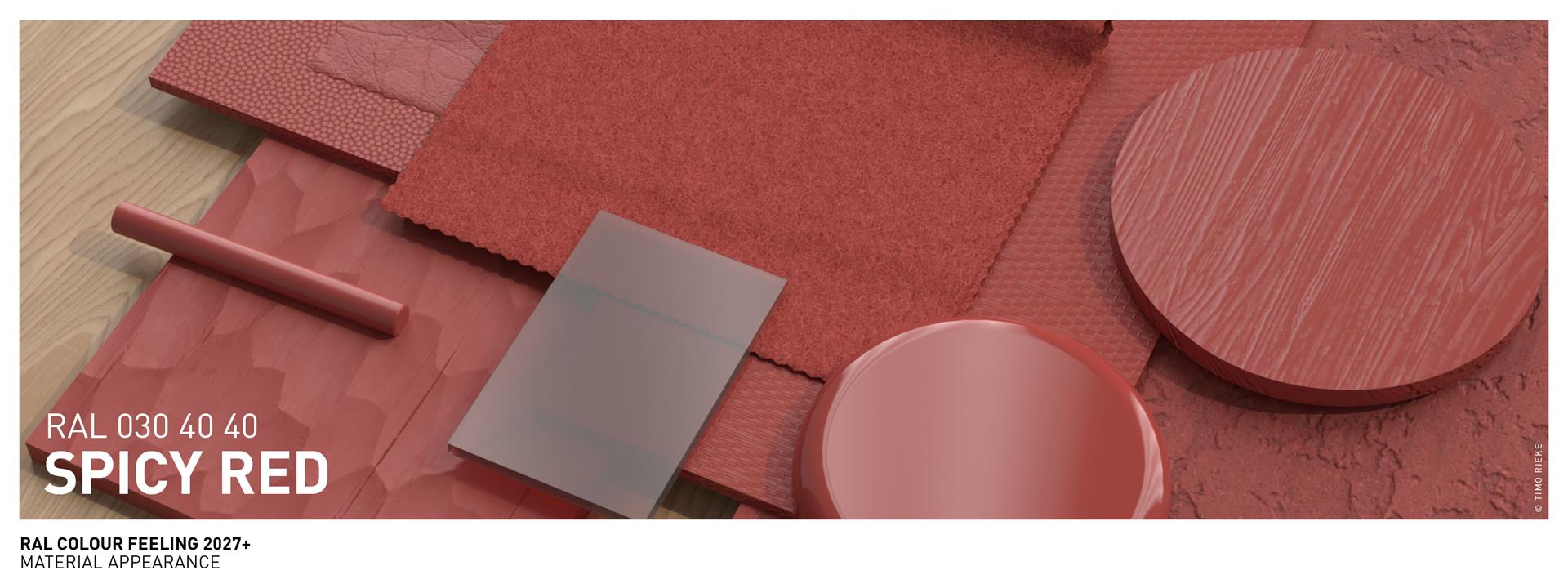 Die RAL Trendbox übersetzt die 15 Farben des Farbtrendreports RAL COLOUR FEELING 2027+ in verschiedene Materialien und Oberflächen.
