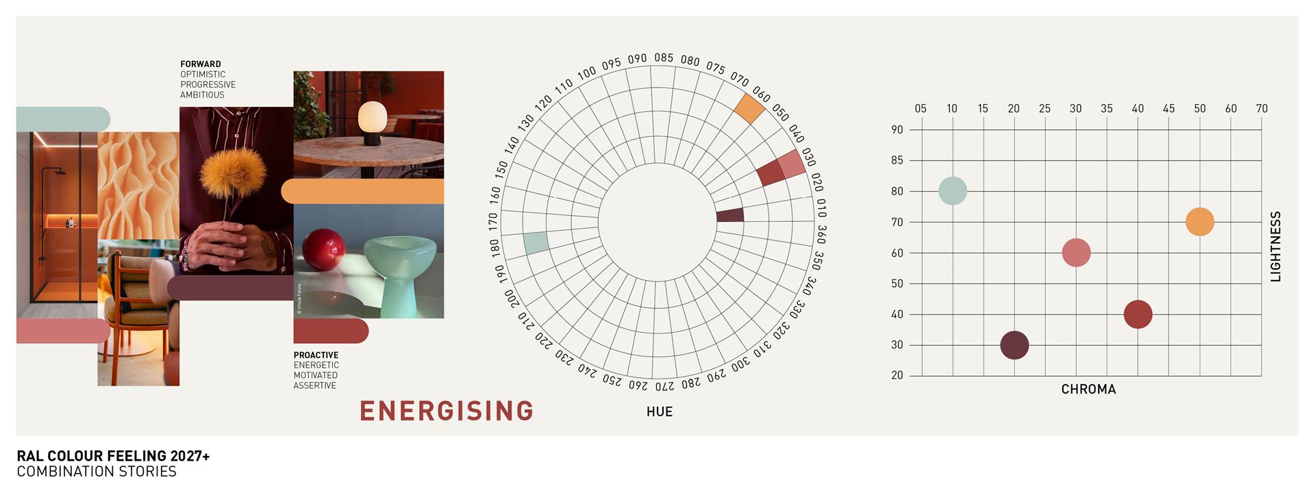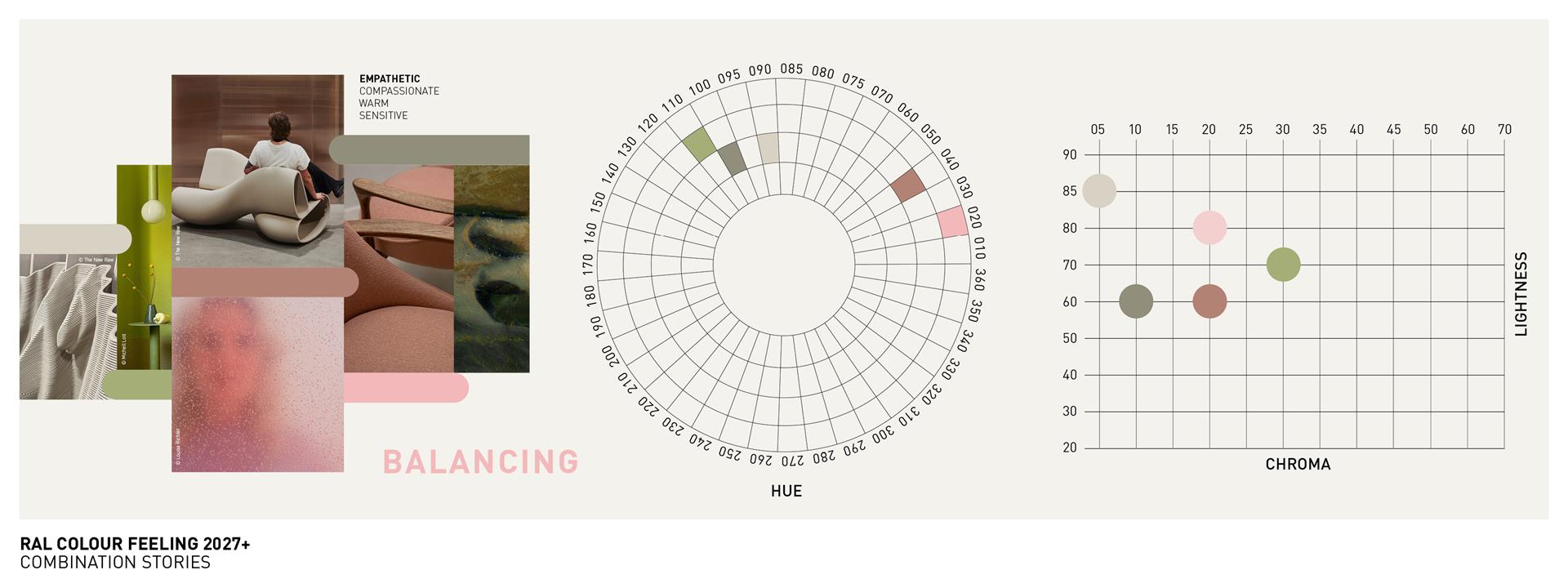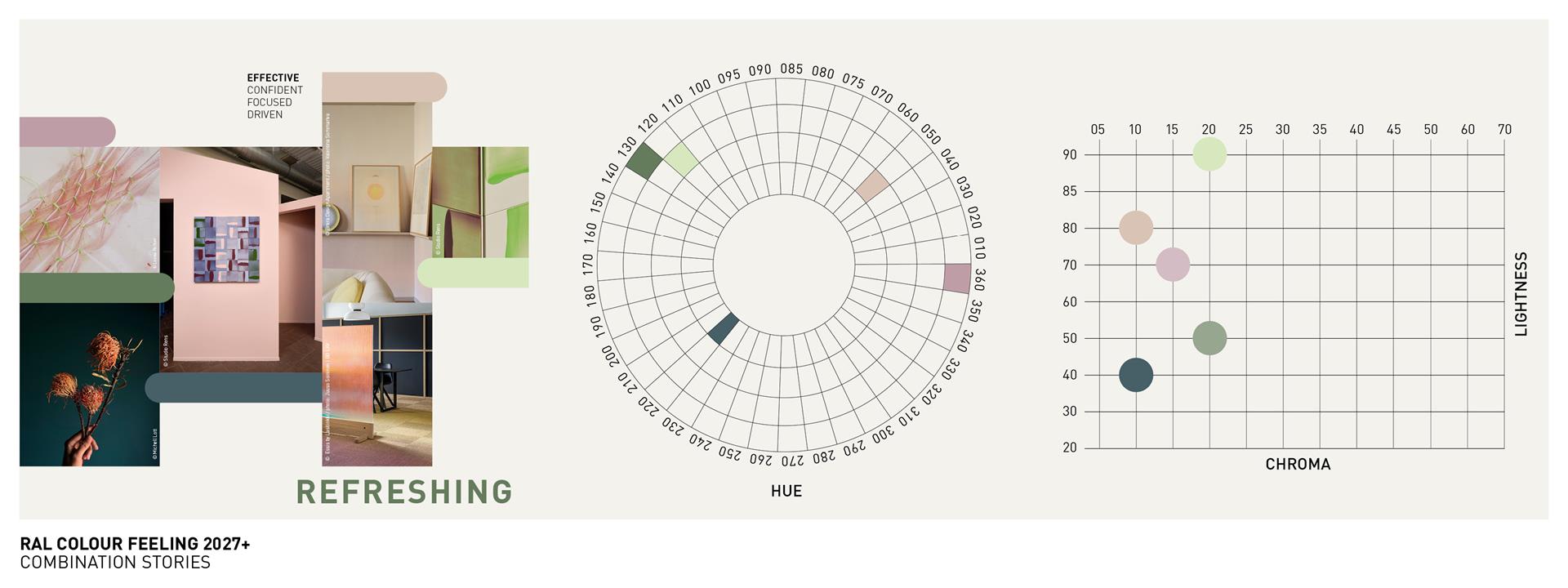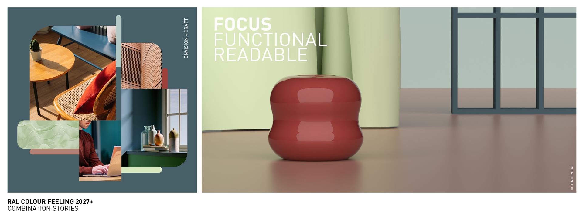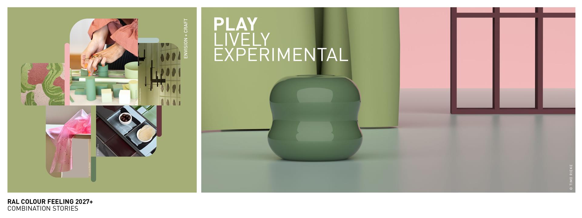 Die RAL Trendbox übersetzt die 15 Farben des Farbtrendreports RAL COLOUR FEELING 2027+ in verschiedene Materialien und Oberflächen.